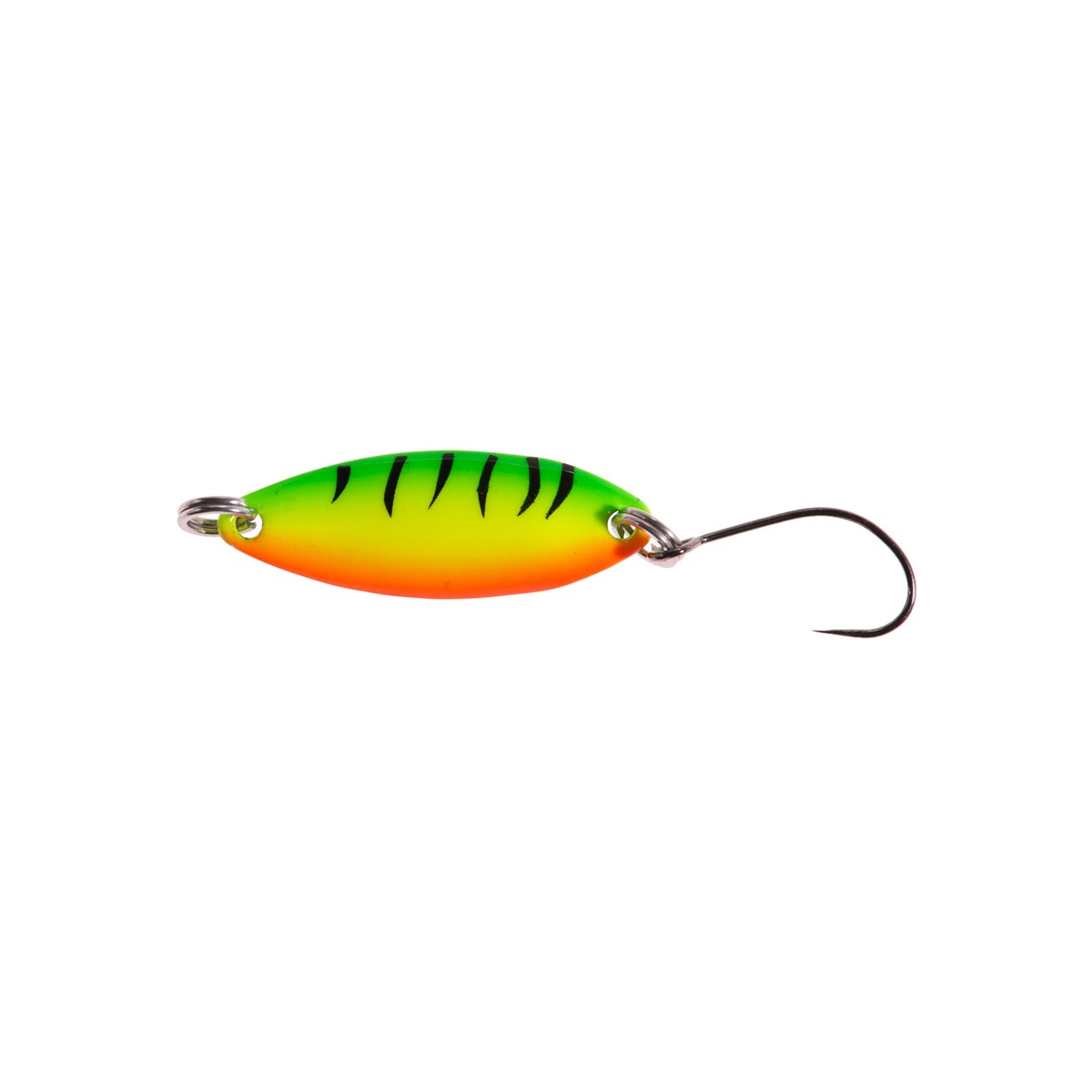 Micro spoon with an oval, elongated body. Works steadily with slow, uniform retrieval.