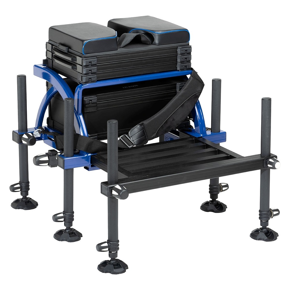 Jaxon Challenge 36Legs diameter: 36 mmWidth: 71.5 cmHeight: 54/118 cmDepth: 74 cmSeat sizes: 45 x 29 cmWeight: 17.5 kgPro Match Challenge SeatboxesBrand new construction of seatboxes. Modern, futuristic designed aluminum frame. Perfect welds make solid and robust frame. Wide range of adjustments allow to stand this seatbox on every ground. Seatbox can be also updated with additional accessories. All trays and drawers can be attached in two ways.