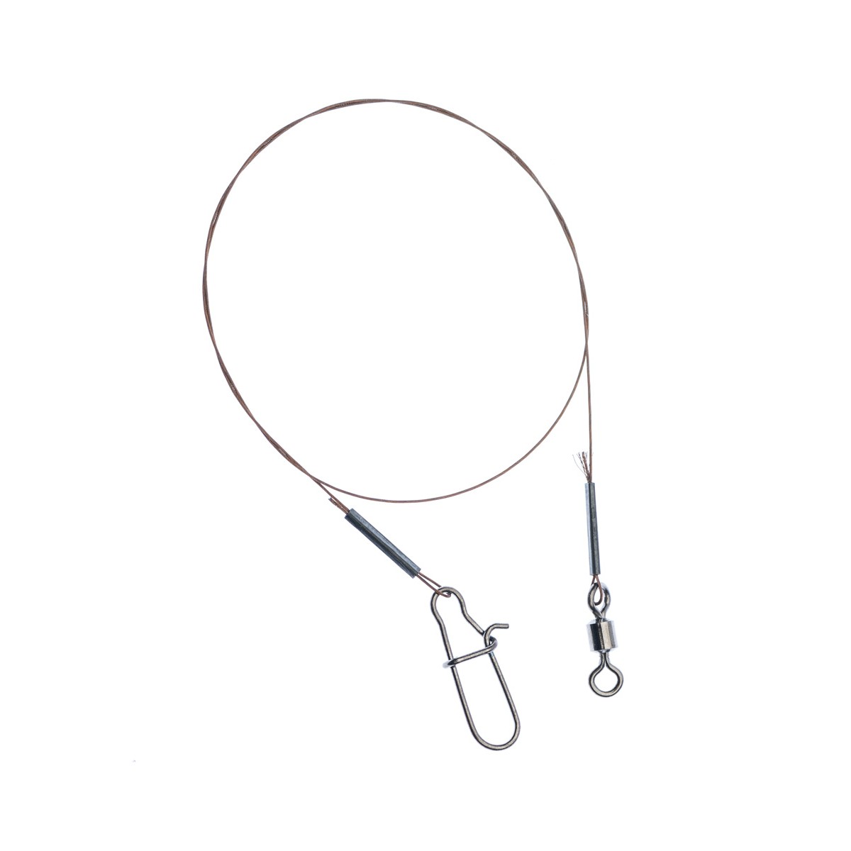 Przypony wykonane z gęstego splotu 19 mikrowłókien stalowych, uzbrojone w krętlik po jednej i agrafkę po drugiej stronie. Bardzo duża wytrzymałość na zrywanie przy stosunkowo małej średnicy plecionki. Maskujący, ciemnobrązowy kolor.
