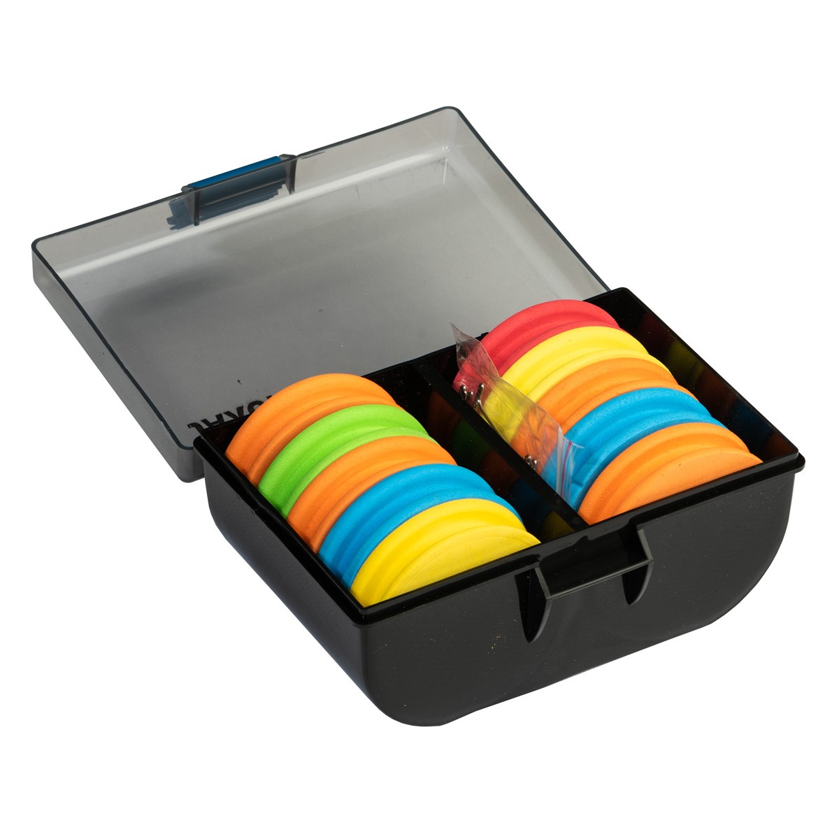 Wygodne zestawy ze szpulkami EVA przeznaczone do przechowywania długich przyponów. W zależności od wybranej opcji 10 lub 24 szpulki w 5 kolorach. Zróżnicowane kolory pozwalają na oznaczenie np. długości przyponów czy wielkości haka.
