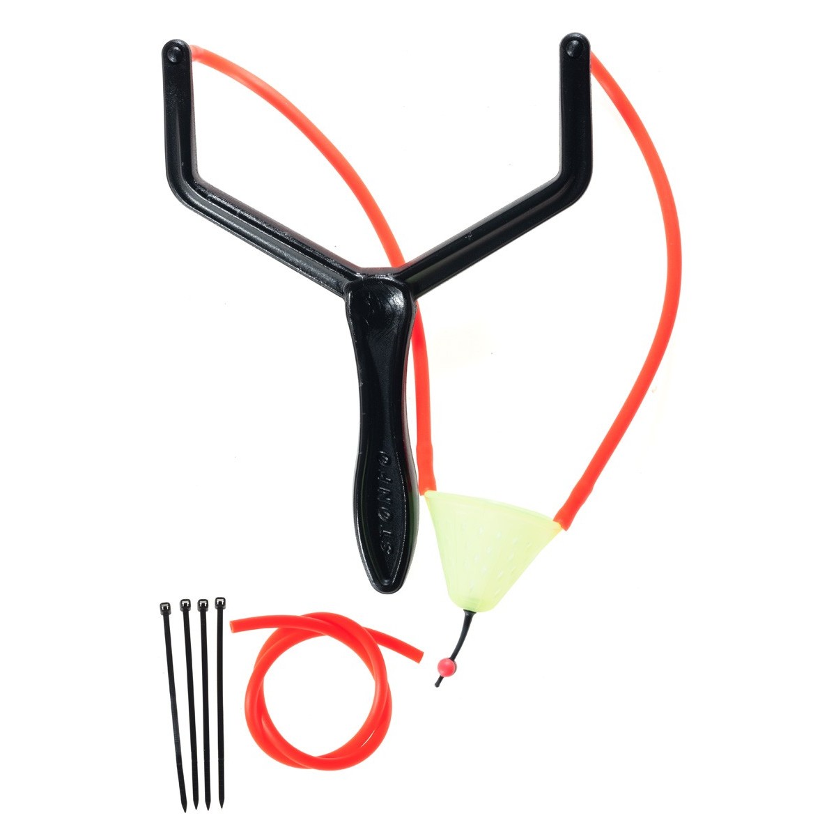 STONFO X-SERIES, precyzyjna proca z małym koszyczkiem do nęcenia ziarnem, robakami lub luźną zanętą na średnich i długich dystansach. W komplecie zapasowe gumki. Zasięg: 40 m