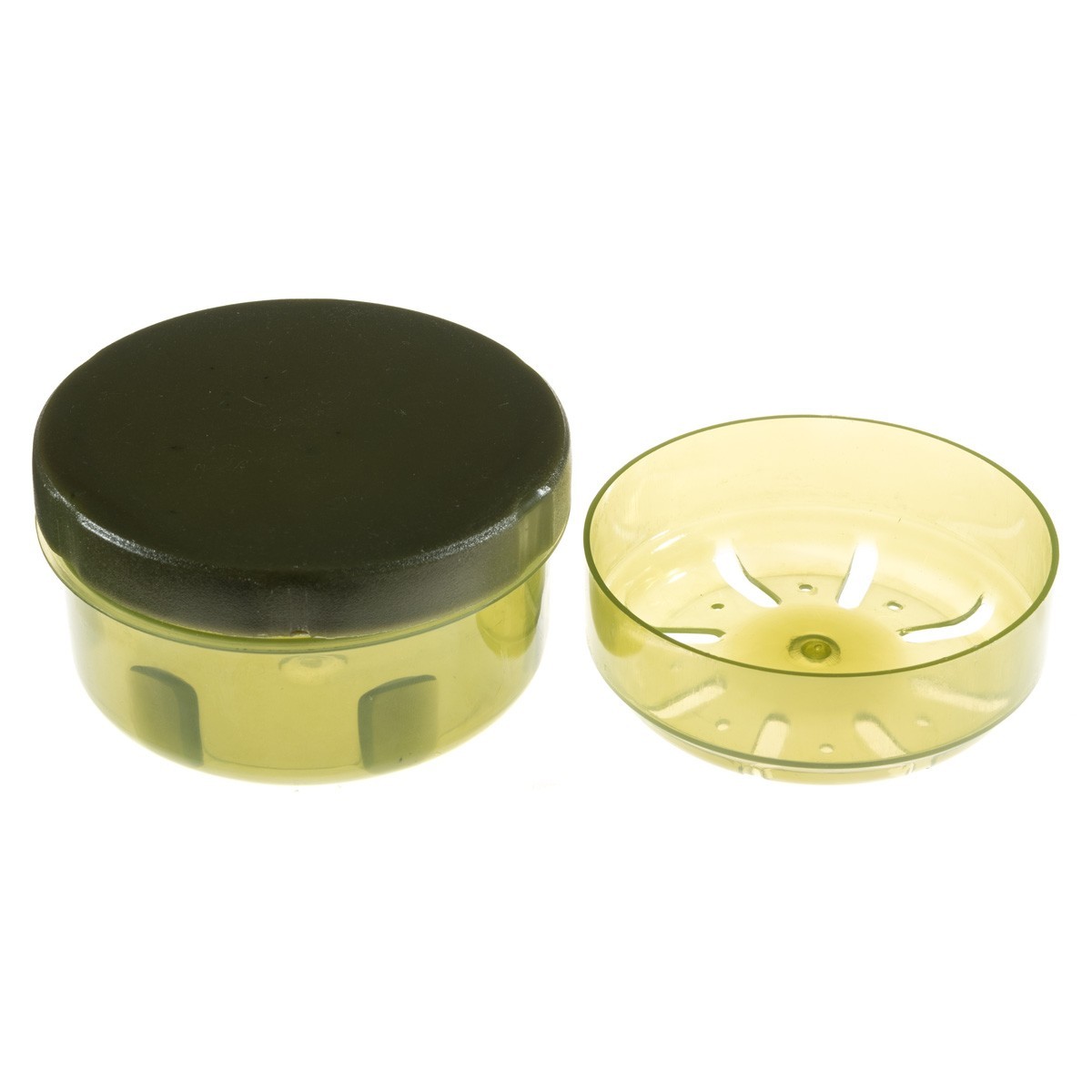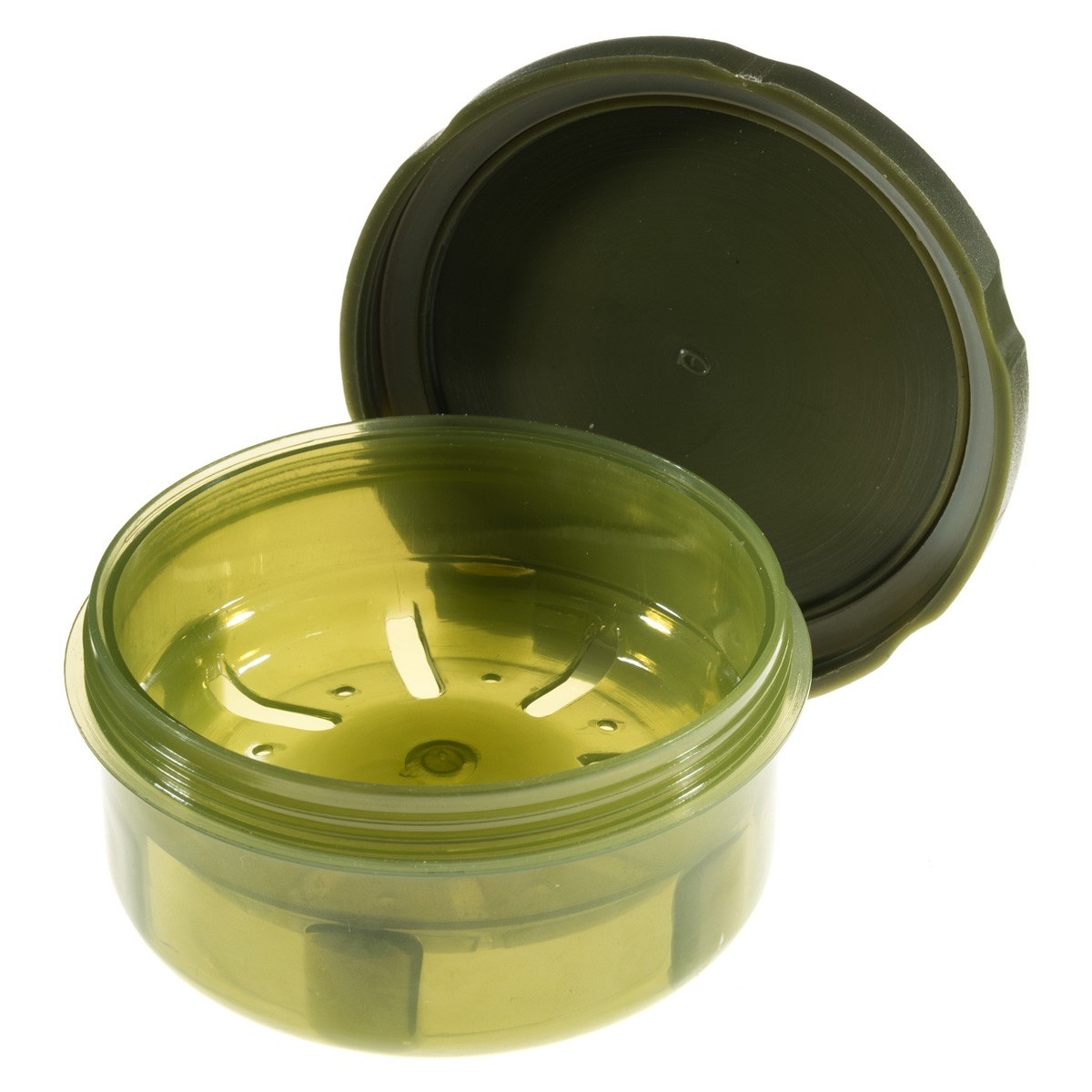 Wygodne pojemniki do dipowania przynęt karpiowych, np. kulek, pelletów i ziarna. Wyposażone w zakrętkę oraz wyciągane sitko, które umożliwia efektywne aromatyzowanie i odsączanie przynęt. Idealne rozwiązanie na zasiadkach karpiowych. W ofercie dwa rozmiary: A - 9 x 5 cm, B - 9 x 6,5 cm.