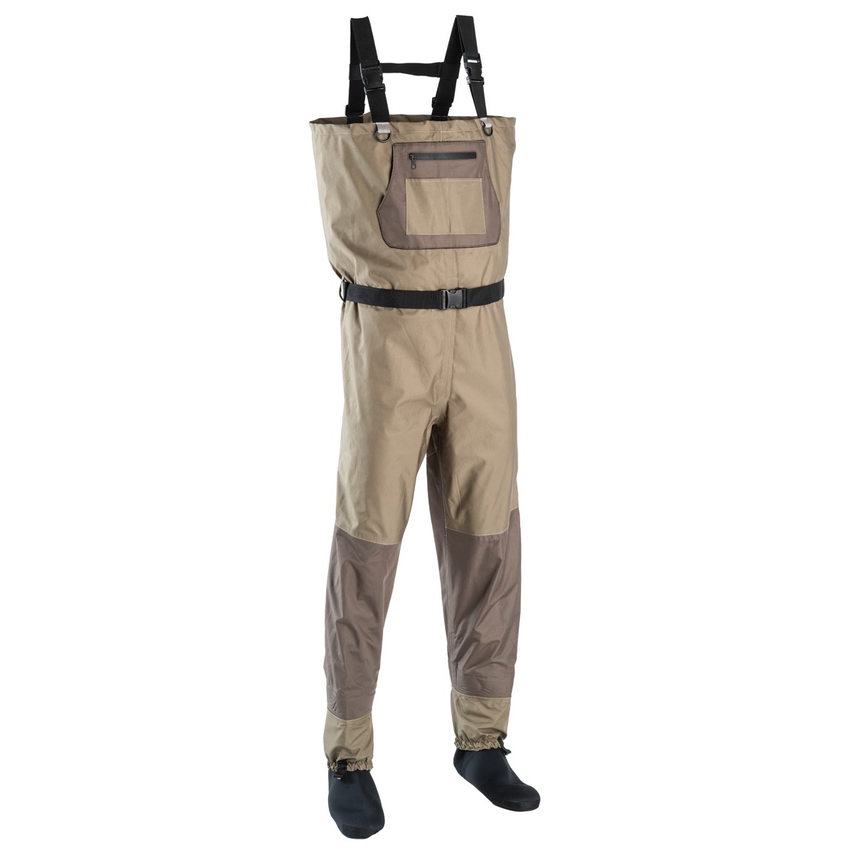 Bardzo lekkie, wygodne spodnie do piersi wykonane z wysokiej klasy materiału z membraną oddychającą, pozwalającą na odprowadzenie pary wodnej. Specjalne właściwości tego materiału powodują, że aktywnie poruszający się nad wodą wędkarz poci się zdecydowanie mniej niż w przypadku spodni wykonanych ze standardowego tworzywa. Swoboda ruchów jest nieporównywalnie lepsza.