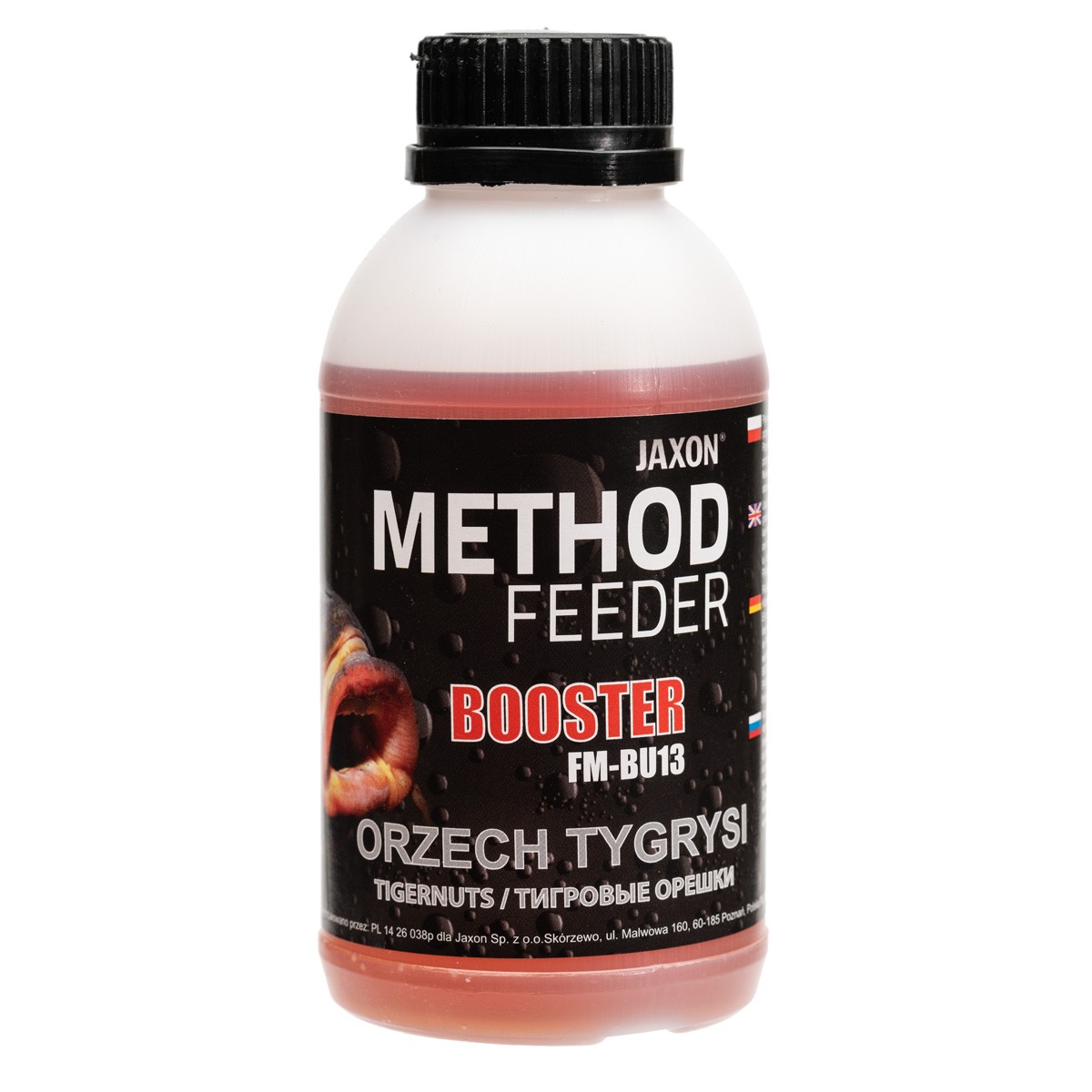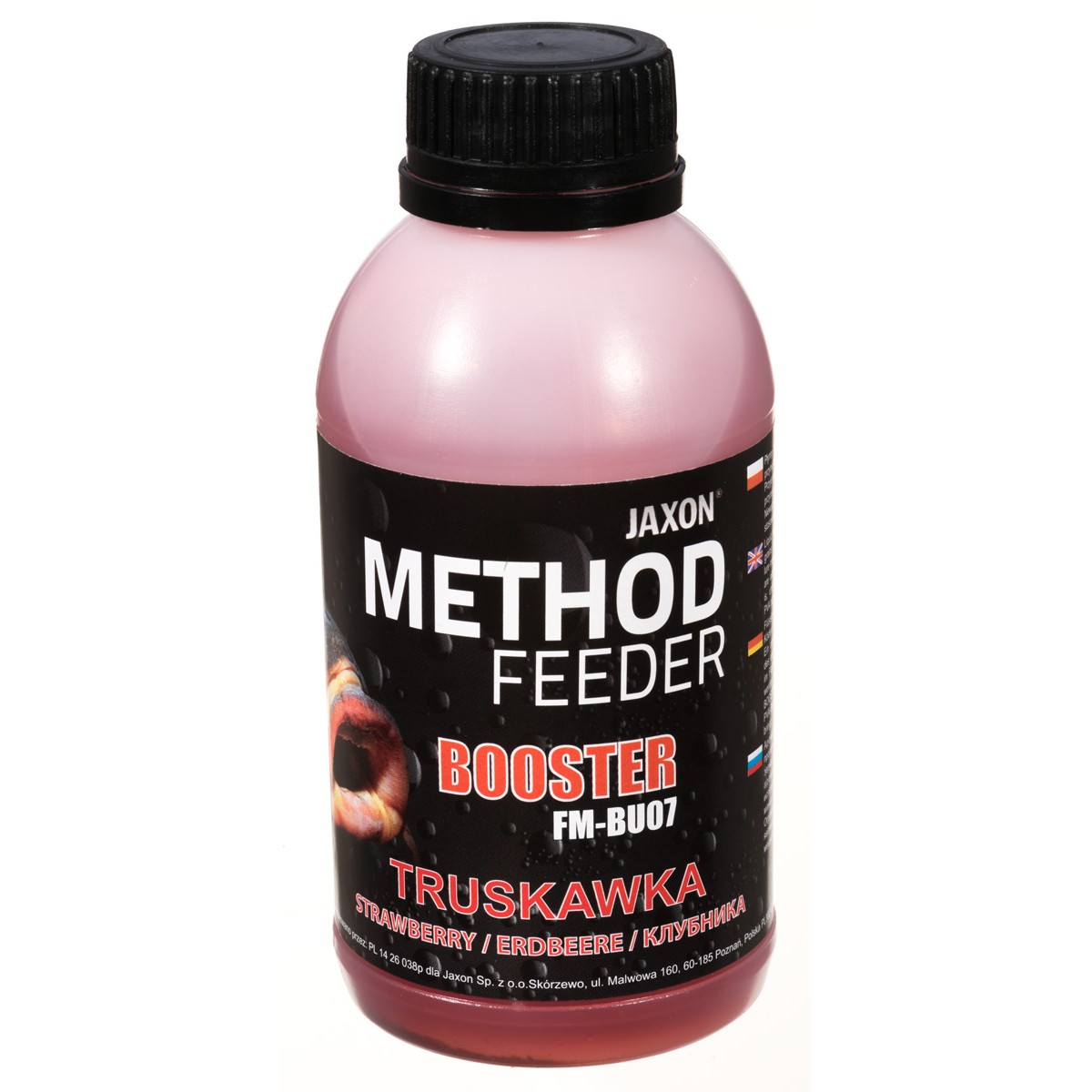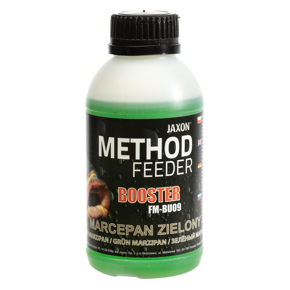 Płynny aromat, służący do nasączania przynęt lub wzbogacania mieszanek zanętowych. Nie rozpuszcza produktów PVA, dlatego istnieje możliwość szerokiego zastosowania. Ciekawą propozycją jest wypełnienie szczelnego woreczka PVA samym boosterem, co spowoduje bardzo silne rozprowadzenie aromatu wokół przynęty. Świetnie się sprawdza jako dodatek do tworzenia masy, którą uzupełniamy koszyczki zanętowe, ponieważ rewelacyjnie wiąże składniki, a w wodzie intensywnie uwalnia aromaty wabiące ryby. Zapach jest mocny, ale jednocześnie nie zniechęca ostrożniejszych ryb. Dostępny w piętnastu wersjach smakowych w opakowaniach 350 g.