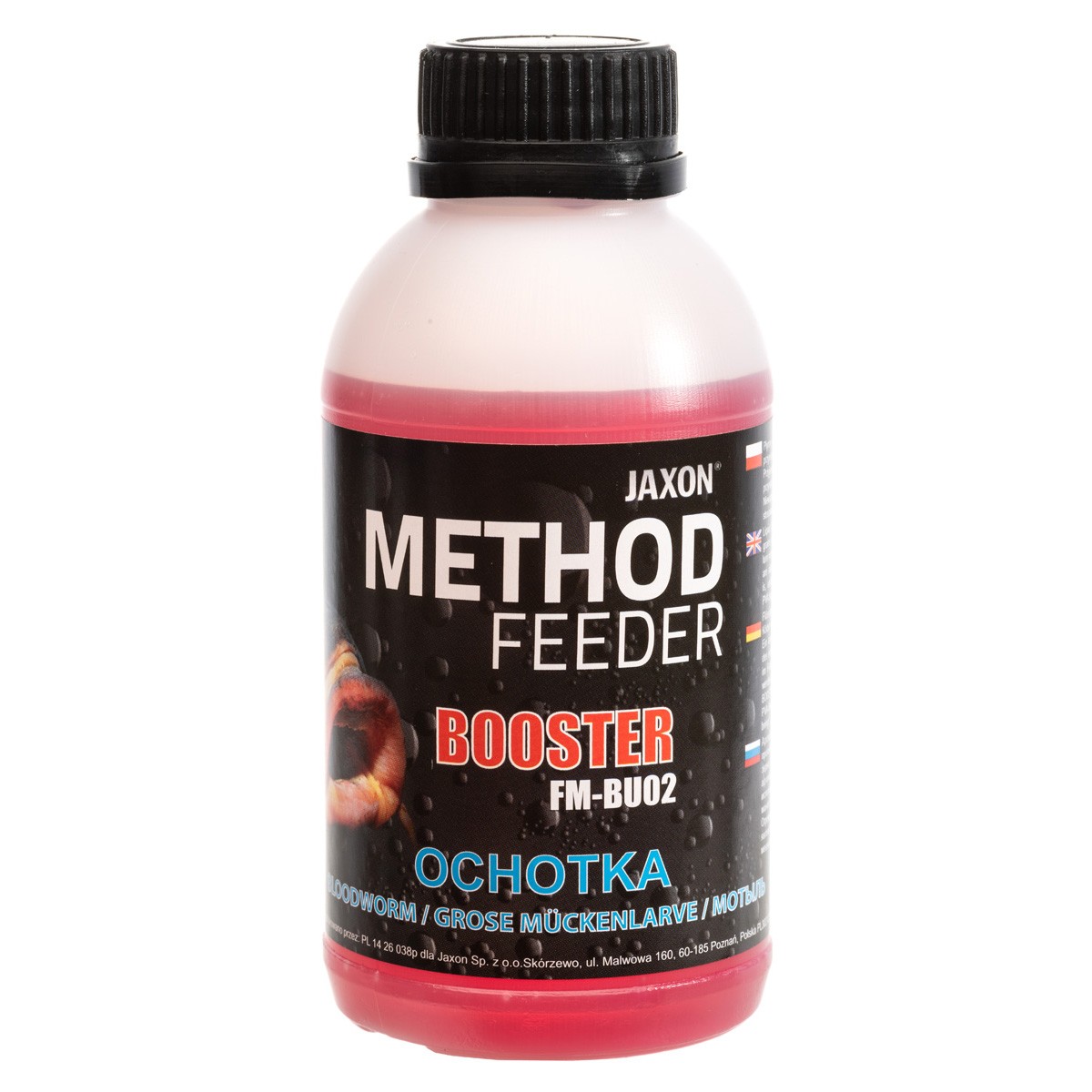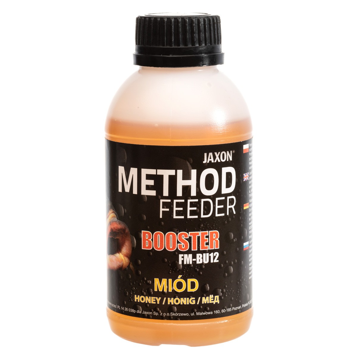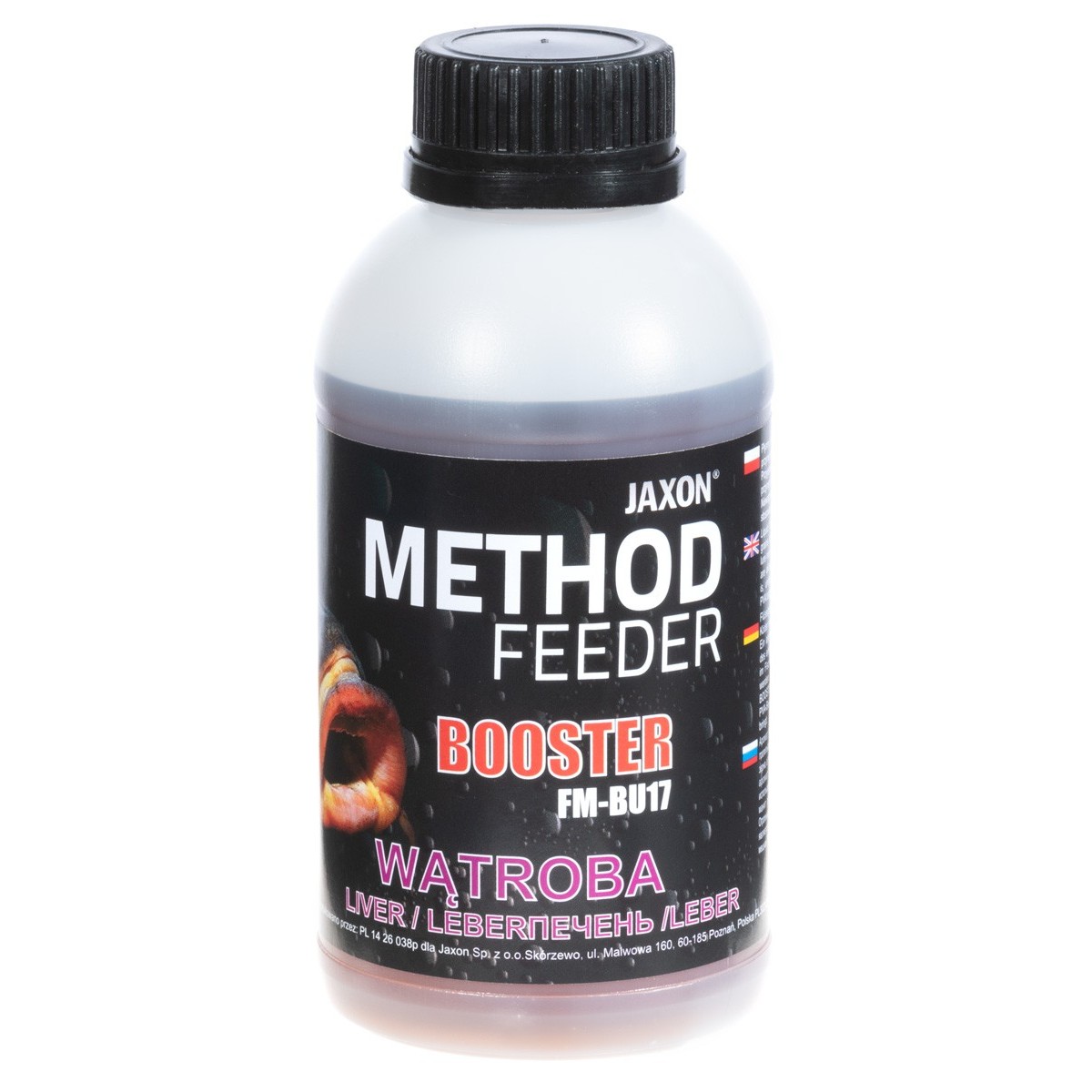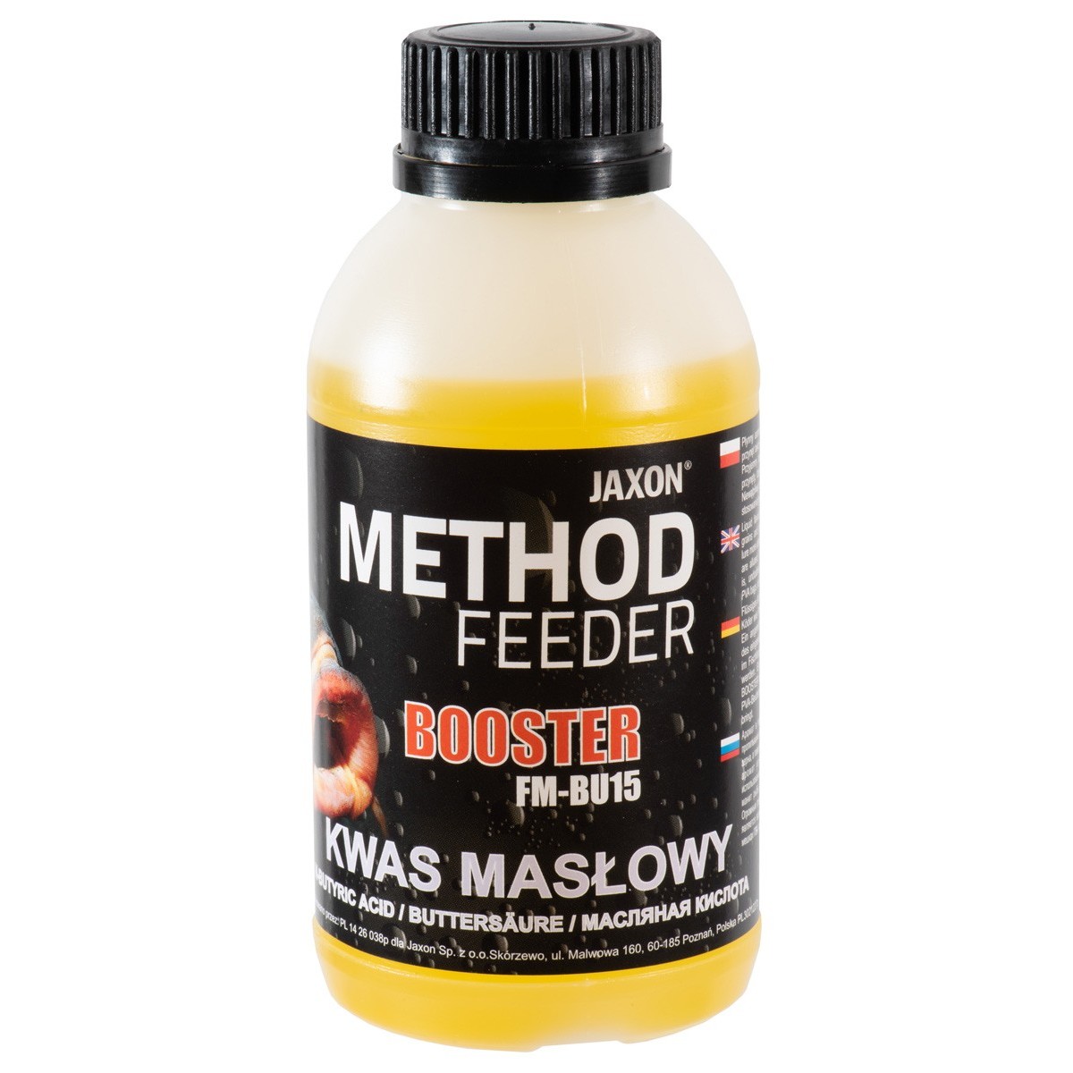 Płynny aromat, służący do nasączania przynęt lub wzbogacania mieszanek zanętowych. Nie rozpuszcza produktów PVA, dlatego istnieje możliwość szerokiego zastosowania. Ciekawą propozycją jest wypełnienie szczelnego woreczka PVA samym boosterem, co spowoduje bardzo silne rozprowadzenie aromatu wokół przynęty. Świetnie się sprawdza jako dodatek do tworzenia masy, którą uzupełniamy koszyczki zanętowe, ponieważ rewelacyjnie wiąże składniki, a w wodzie intensywnie uwalnia aromaty wabiące ryby. Zapach jest mocny, ale jednocześnie nie zniechęca ostrożniejszych ryb. Dostępny w piętnastu wersjach smakowych w opakowaniach 350 g.