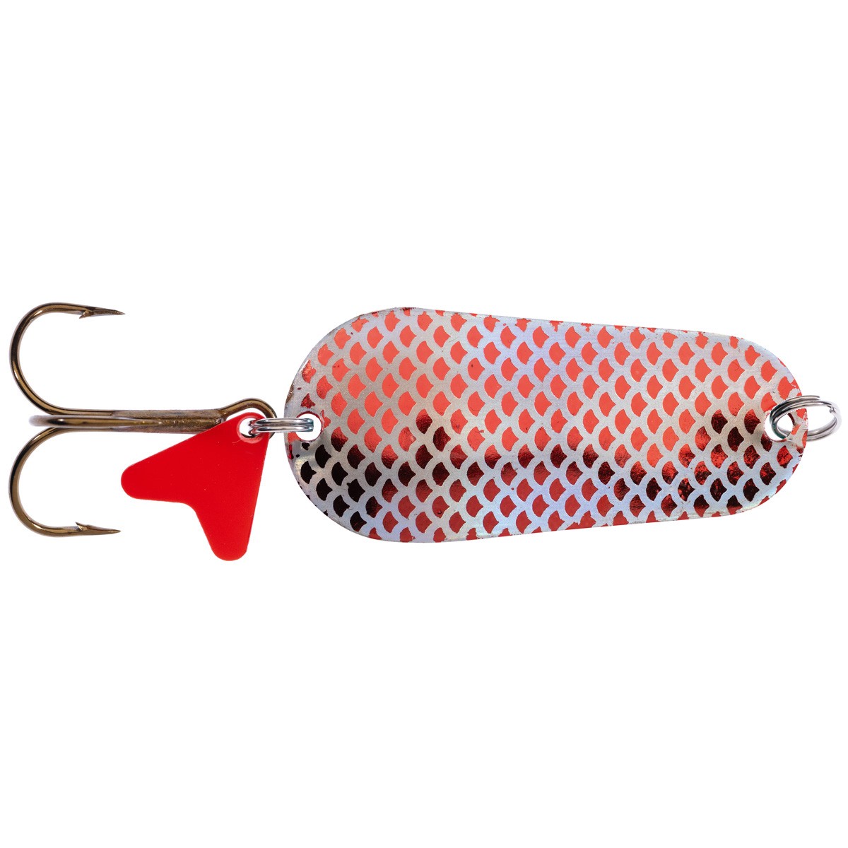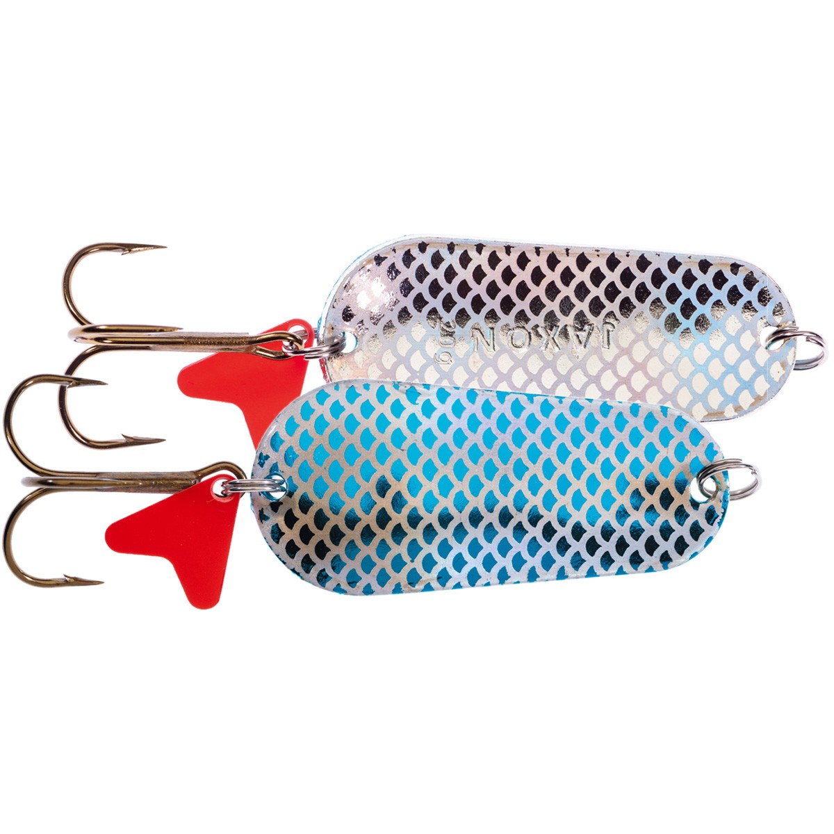 HS FLEX GNOM RAB Błystki wahadłowe z motywem rybiej łuski, charakteryzujące się dwoma różnymi kolorami po każdej ze stron. Strona wewnętrzna B jest w większości modeli srebrna, natomiast strona zewnętrzna A zmienia kolor – w ofercie 6 kombinacji dwóch kolorów.