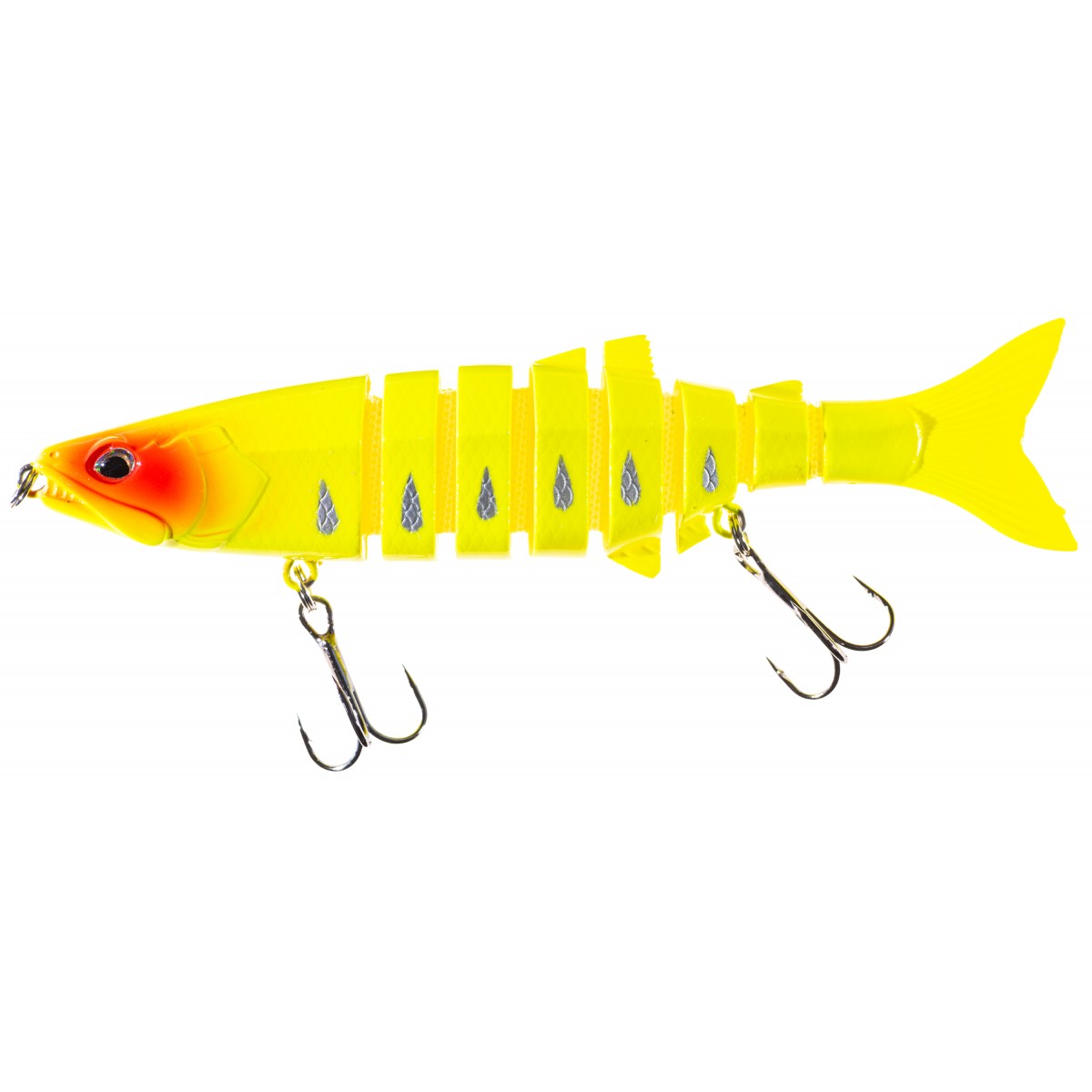 Wydłużony, smukły swimbait w wersji tonącej. Dzięki wieloelementowej konstrukcji porusza się w wodzie jak prawdziwa ofiara drapieżników. Precyzyjnie zaznaczone detale: łuski, pokrywy skrzelowe i płetwy, nadają realistyczny wygląd, który sprawia, że wobler prezentuje się imponująco i skutecznie prowokuje ryby do ataku. Rozmiar 12 cm o wadze 19 g, idealny do prowadzenia w warstwie wody od 1 do 4 metrów.