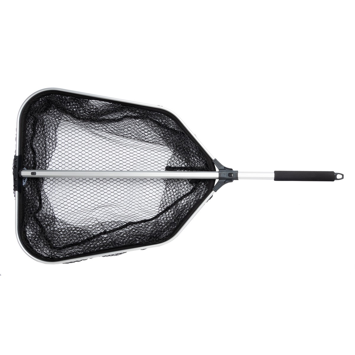 Podbierak z obszernym pływającym koszem. Wygodna w transporcie rączka chowana do środka podbieraka. Pływająca głowa pozwala na podbieranie ryby nawet jedna ręką i nie powoduje zmęczenia podczas kilkukrotnych prób wprowadzenia ryby do kosza.