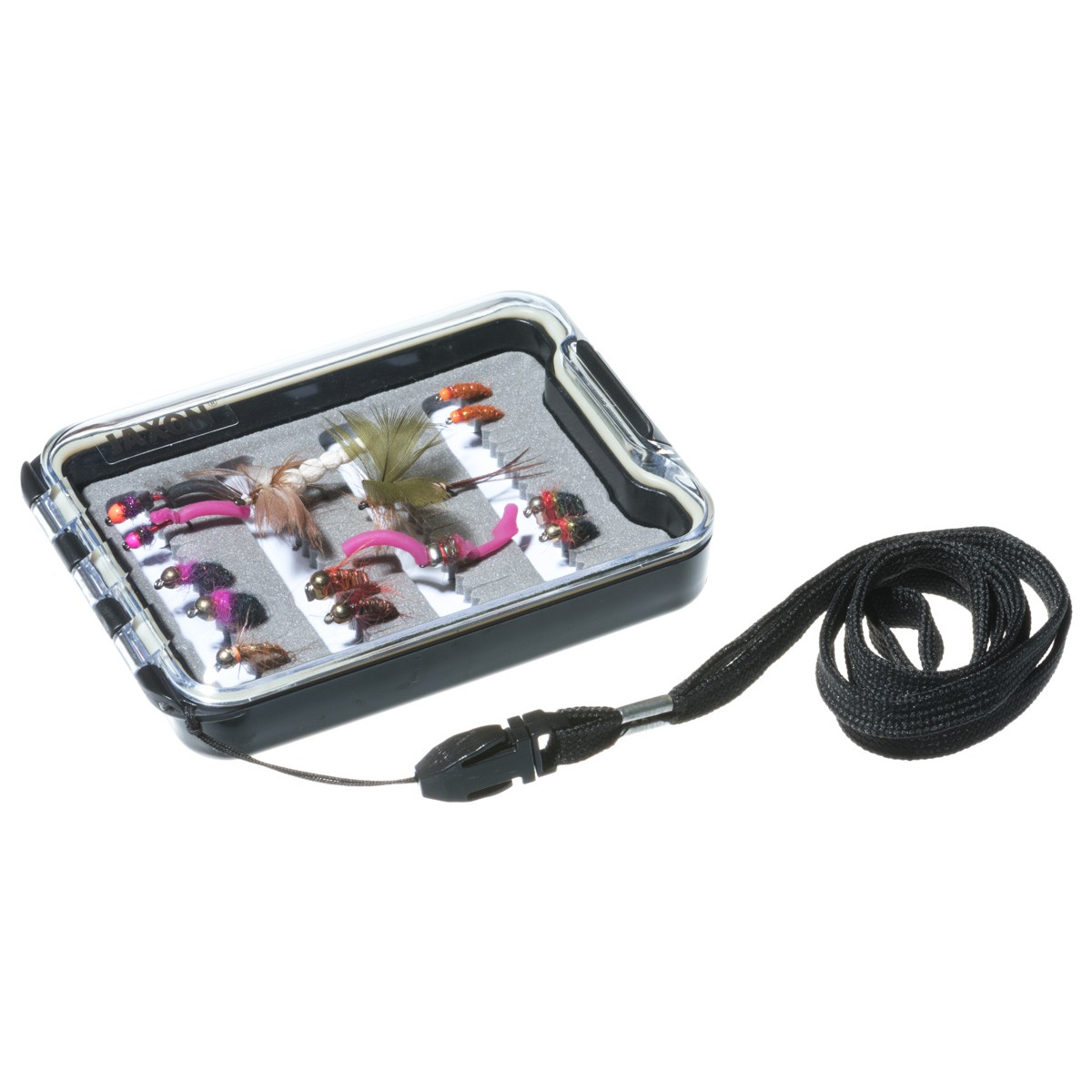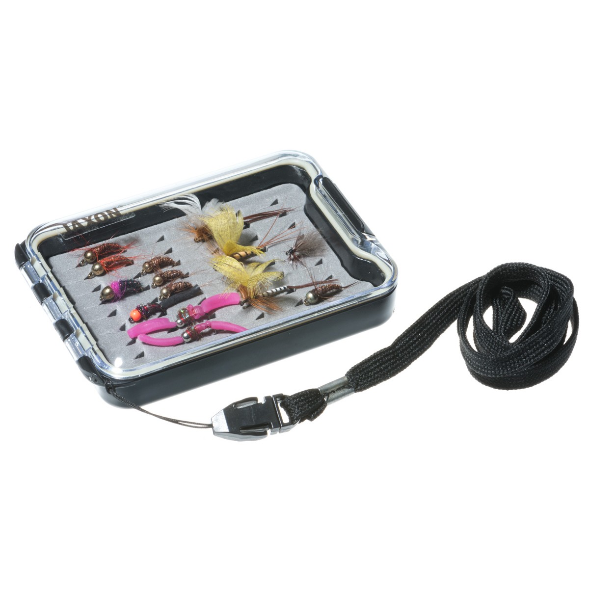 Małe pudełka muchowe jednostronne z uszczelką zabezpieczającą przed zamoczeniem przynęt. Idealne do małych kieszeni. Dodatkowo wyposażone w praktyczną smycz. Trzy rodzaje wewnętrznych powierzchni.