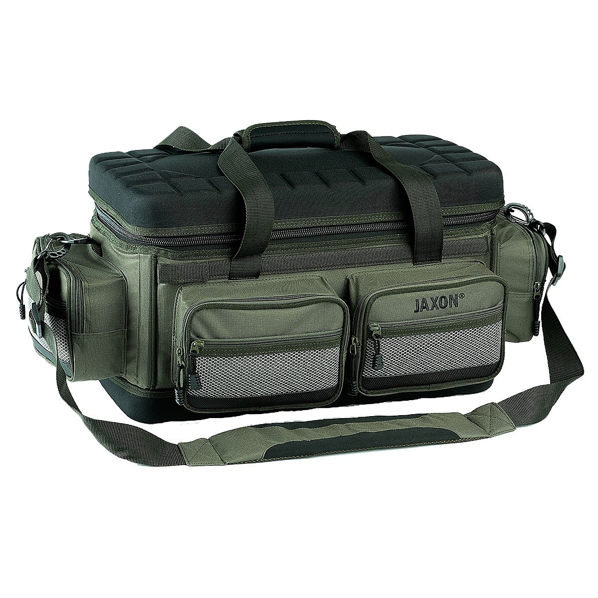 Wygodne, pojemne torby wędkarskie z dodatkowymi schowkami w bocznych kieszeniach.