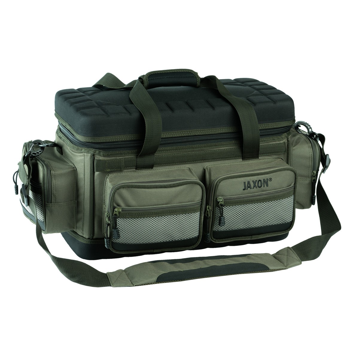 Wygodne, pojemne torby wędkarskie z dodatkowymi schowkami w bocznych kieszeniach.
