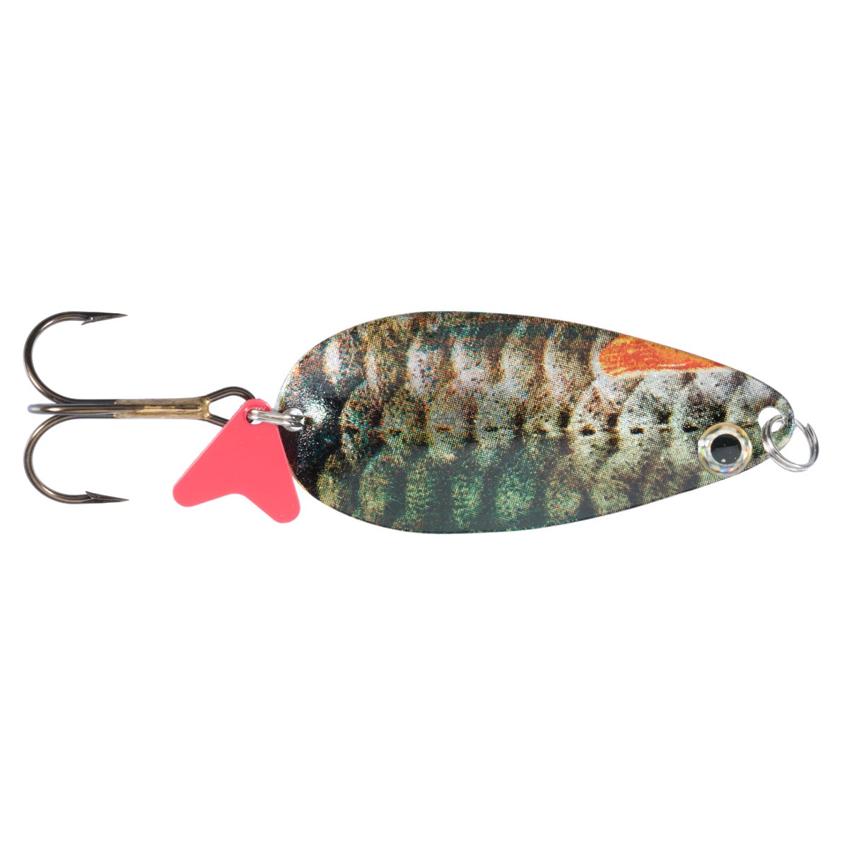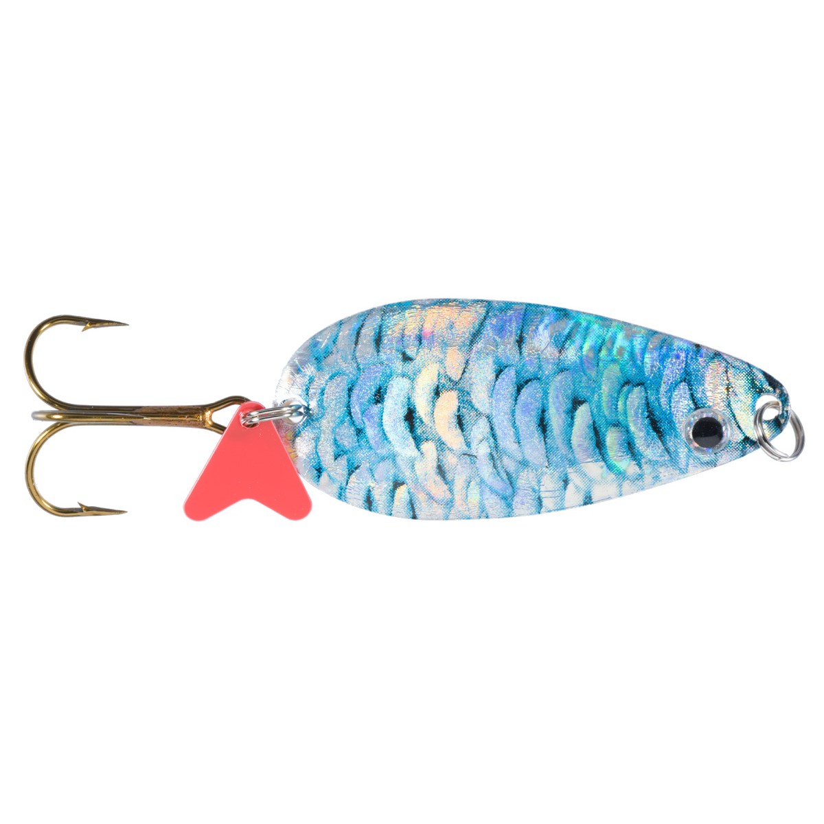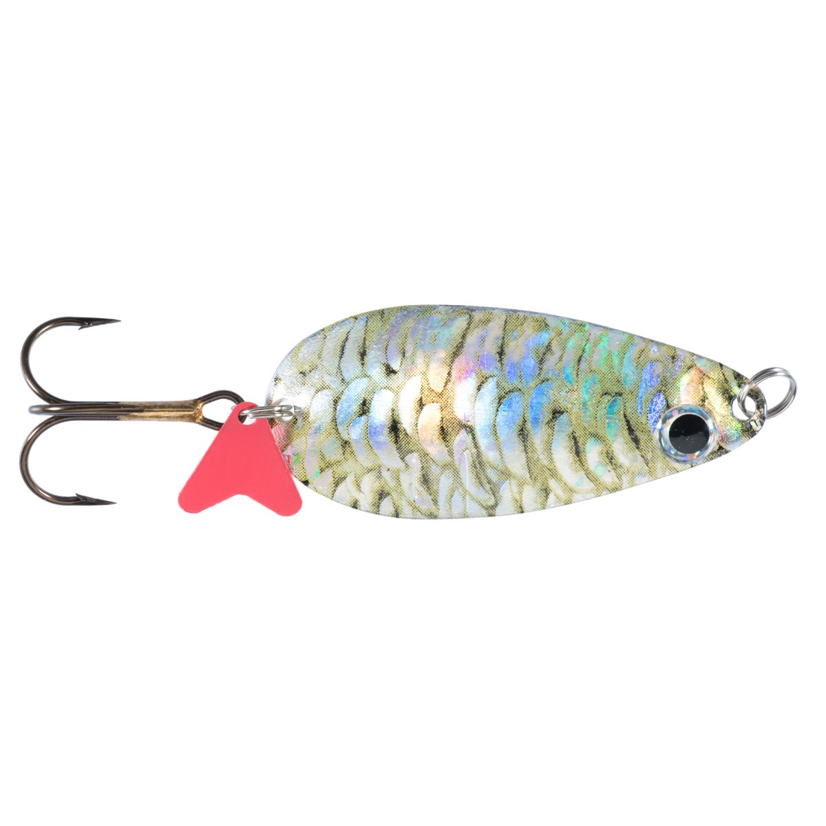 HS KARAŚ KROL Powierzchnia błystki z motywem rybiej łuski, efekt holograficzny.