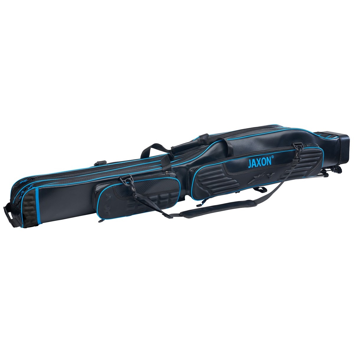 Usztywniany pokrowiec-tuba ze stojakiem w komplecie zapewnia ekstremalną ochronę wędzisk w transporcie. Posiada trzy przegrody na wędki uzbrojone w kołowrotki, podłużne kieszenie zewnętrzne na podbierak i podpórki oraz mniejszą na akcesoria. Dwa uchwyty i regulowany pas na ramię poprawiają komfort użytkowania.
