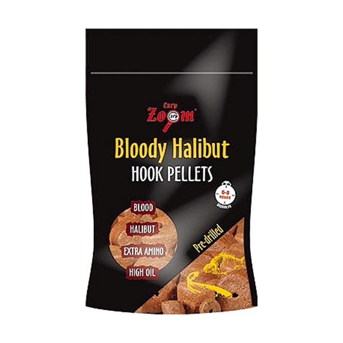 Profesjonalny pellet haczykowy przygotowany na bazie halibuta z dodatkiem krwi i aminokwasów. To specjalnie przygotowana mieszanka, którą nie pogardzi żaden karp. Czas rozpuszczania: od 4 do 12 godzin, w zależności od średnicy. Występuje w dwóch wymiarach: 8 mm, 15 mm oraz w dwóch smakach, w opakowaniach 150 g.