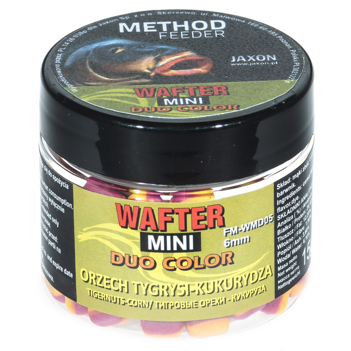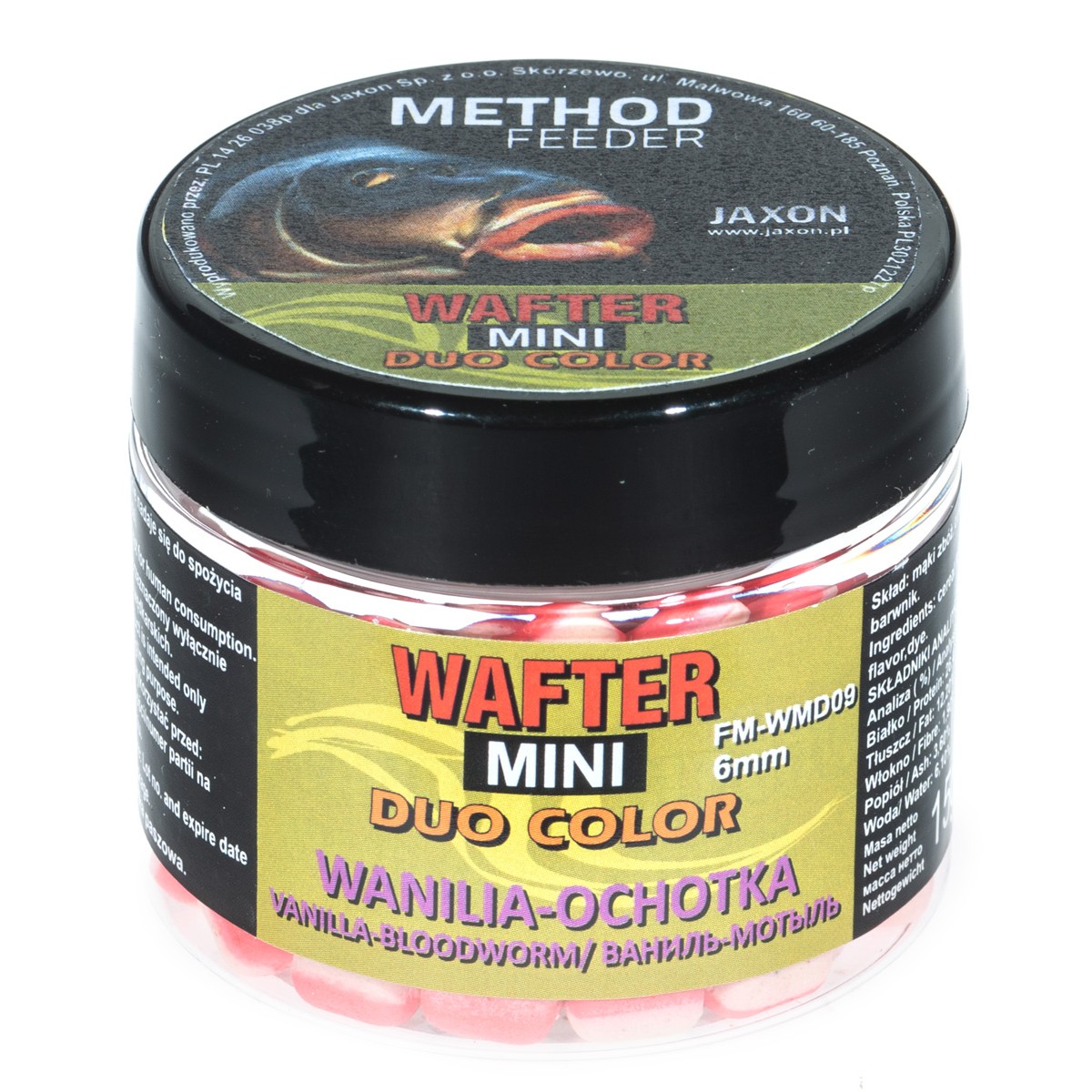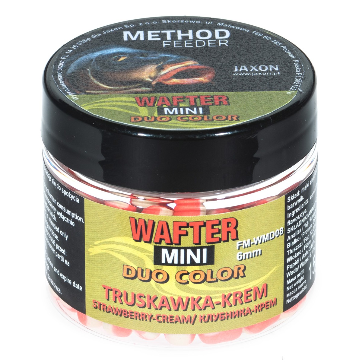 Dwukolorowa wersja przynęt typu wafter. Naturalne składniki o najwyższej jakości, wyselekcjonowana baza dwóch różnych smaków pozwoli nam wyróżnić naszą przynętę i skusi ostrożną rybę do brania. Przynęty nie pękają w trakcie zakładania na haczyk i nie wymagają wstępnego nawiercania. Pakowane po 15 g w słoiczkach.